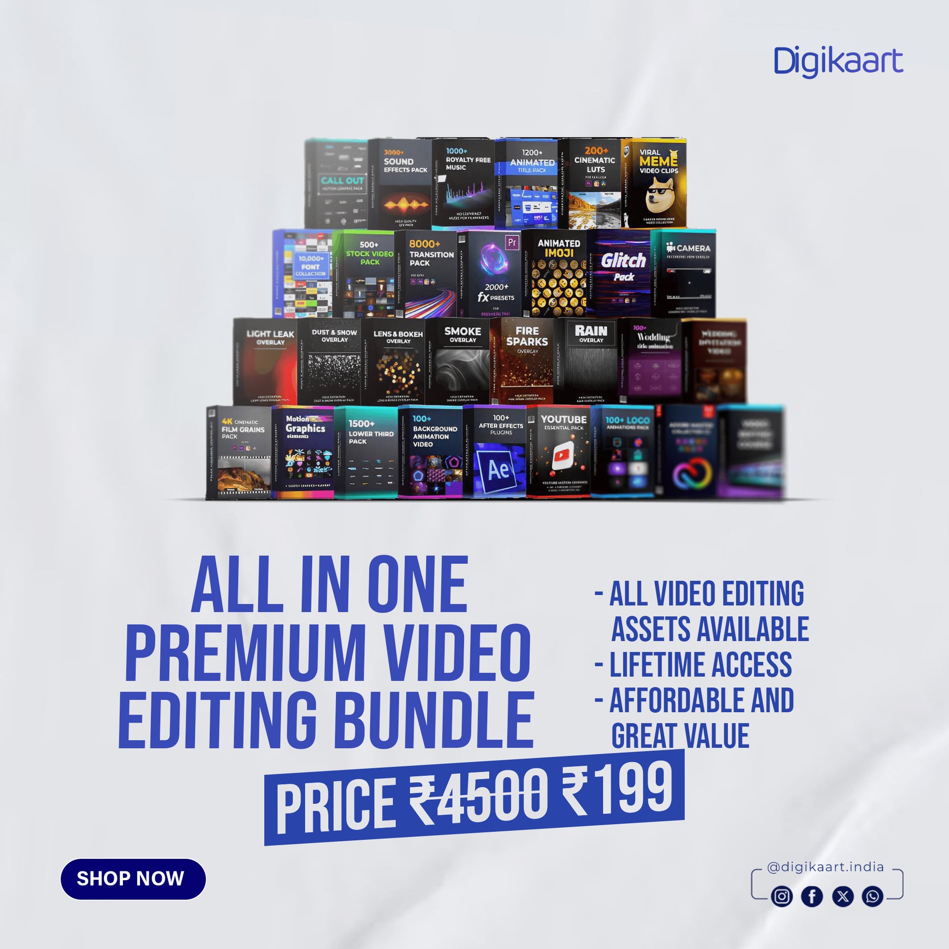 Take your video editing to the next level with the Mega Video Editing Bundle—a complete collection of premium tools, effects, and assets designed for creators of all levels. Whether you're a Filmmaker, YouTuber, Freelancer, Streamer, Video Editor, Course Creator, Vlogger, Trainer, or Wedding Videographer, this bundle is your key to stunning, professional-quality videos.